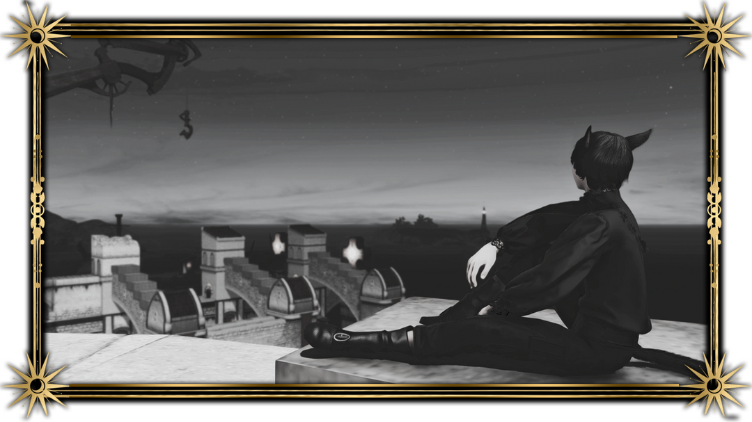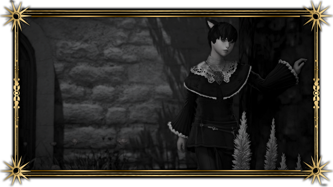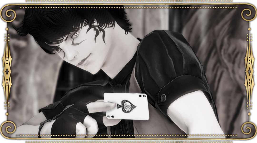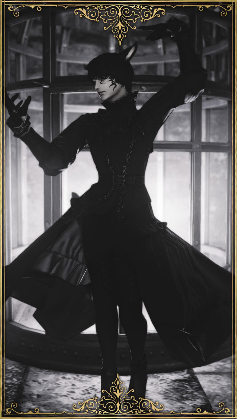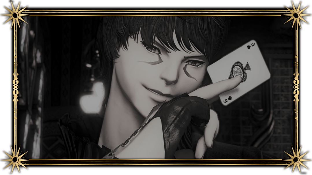 After an unpleasant encounter with one of his father's business associates, a young E'lithas awakened abruptly at three bells past the twelfth that same night. Sitting up in bed, he looked out his window and caught movement at the edge of the estate property, close to the treeline. Curious, he ventured outside (none were awake to notice, nor would they have cared if they were) and crossed the well-kept lawn. Upon reaching the edge of the property, he entered the cedarwoods and was offered freedom.A deal was struck, a book signed, and a price promised to be collected at a later time — when it 'twould be delicious.Until then, E'lithas continued his tutoring, far more focused on putting his knowledge of card games to use. Now old enough to navigate the roads to Limsa Lominsa on his own, he made it a habit of regularly traveling into the main city-state, where he began to indulge in what would become one of his greatest vices: gambling. Over the next few summers, he established a reputation in the guild halls, taverns, and Limsan docks as a striking miqo’te lad with the wits about him to clean out an entire crew’s coin purses.